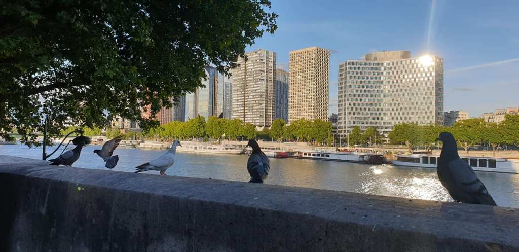 It’s heartwarming to see that Paris is alive once again. ❤ In the early evening, the mall had a sizeable crowd, cafes were full, many were jogging, many were out for a walk, grocery stores were open, and small groups were happily chatting along the banks of the Seine River. I sat on a bench, where five pigeons gladly joined me, perching on the cemented fence a foot away from me, while observing social distancing. 😉
