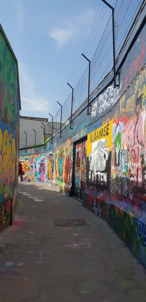 (I initially identified Ghent as Bruges. That was a mistake. What made me realize it a few days after posting was the graffiti-lined street, which I labeled in my files as “Graffiti in Ghent.”)