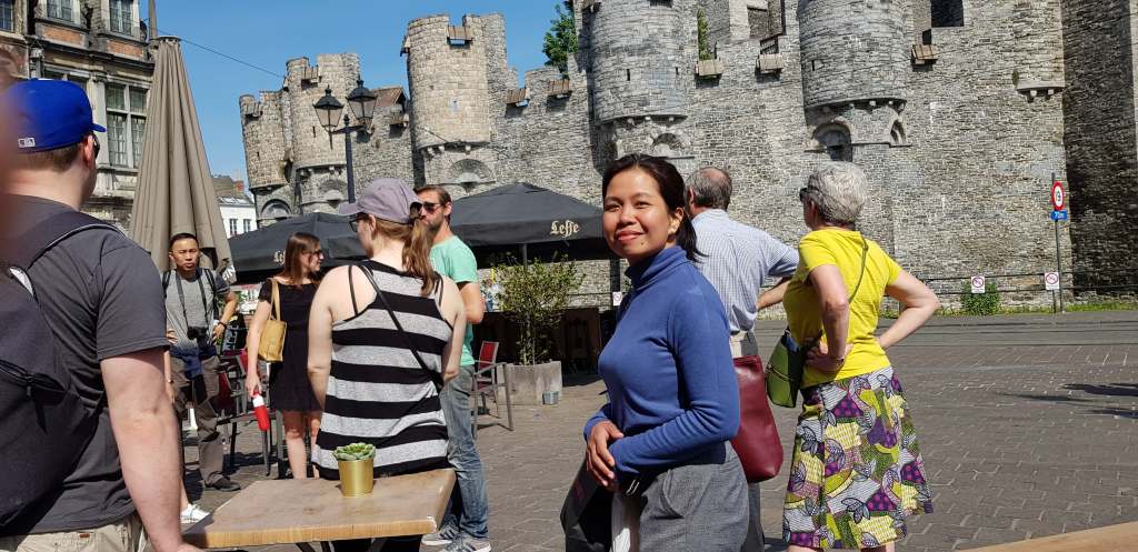 Half of the day was spent in Ghent. When we arrived, we were given the entire morning to explore the place. The organizer gave us tips about the nearby places and landmarks we could visit, with the reminder to be back at exactly 1pm in the same spot. My two companions (a work colleague and her husband) had a great morning walking around. We passed by a church, we took photos from the bridge, and we came across a hotel that serendipitously offered free walking tours. But since the tour started at 10AM, we had a lot of time to check out the neighborhood.