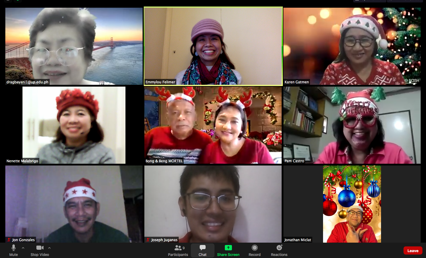 Despite being in three different time zones, we were able to make our meeting and virtual Christmas party happen. There were songs, dances, memorable quotes, heartwarming messages and playful jests.